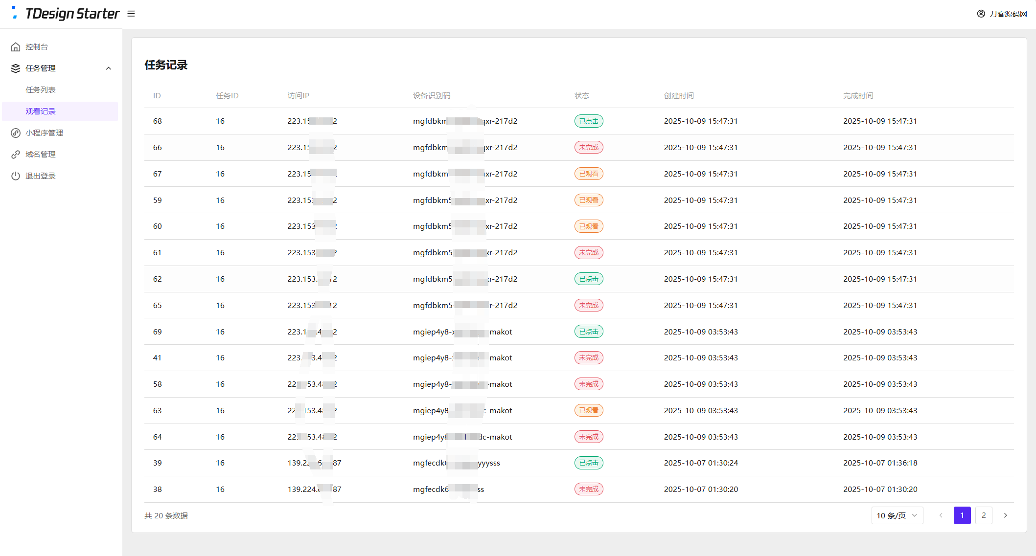 用户打开任务页面